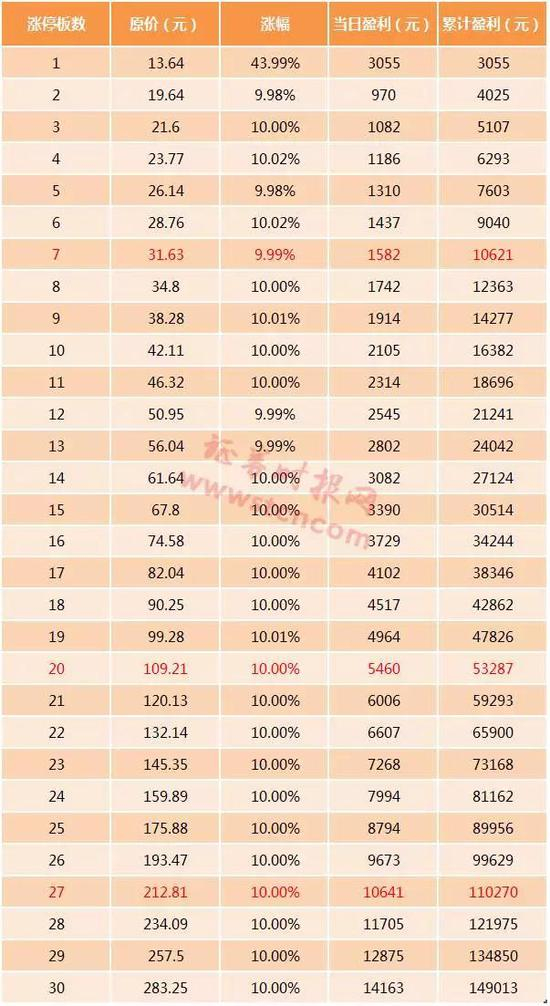 华大基因发行价13.64元,上市当天上涨44%就可以盈利3055元,7个涨停板盈利过万,20个涨停板盈利过5万,27个涨停板盈利过10万。听上去很美好,不过27个板,意味着股价将要超过200元,市值超过800亿元,市盈率超过150倍,可能性非常小。