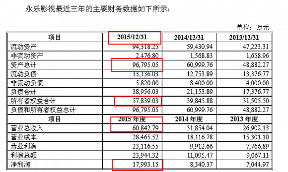 永乐影视借壳宏达新材时标的公司的资产情况(披露时间:2016/6)