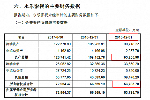 当代东方收购永乐影视时标的公司的资产情况(披露时间:2017/7)