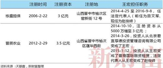 这几家公司均分别经历了数次工商资料变更,天眼查资料显示,一名叫做“王宏”的人曾在晋辰农业、栋盛融资等担任过股东及法定代表人角色。只是他所担任的职务目前均已替换成赵俊峰,后者一度为稳盛金融的高管(表2)。