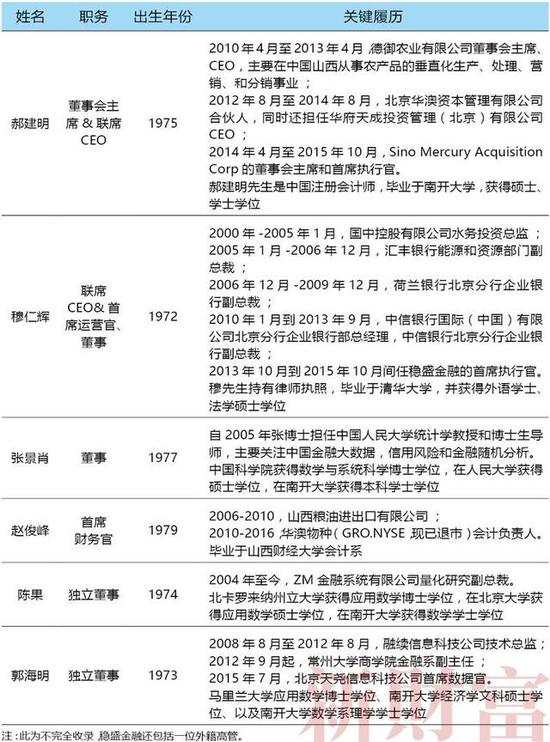表3:稳盛金融的高管团队清一色高学历,且年纪相似