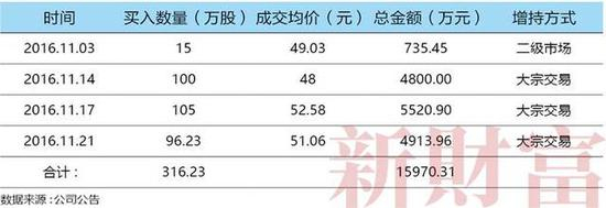 表11:张永东个人陆续增持316.23万股,总成本约1.6亿元