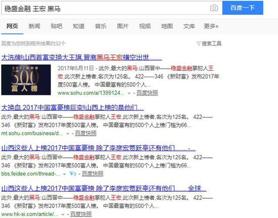 2017年4月起,伴随稳盛金融股价大涨,王宏现身百度。