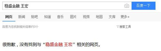 如此看来,稳盛金融的大股东WANG HONG基本可确定为王宏。但这位王宏如此低调,以至于小编2017年2月以“稳盛金融王宏”为关键词搜索时,发现度娘也不能提供任何有用信息,只有天眼查中可见其部分资料。