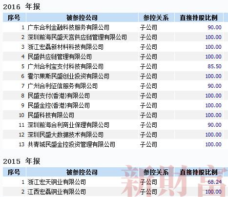 其三,大规模设立子公司。从WIND披露数据来看,2015年宏磊股份仅有两家制造业子公司,到了2016年,其通过收购广东合利增加了4家子公司,此外还设立了多达9家子公司,业务类型横跨第三方支付、商业保理、供应链管理、投资管理等(表7)。值得注意的是,其还在香港设立了民盛支付(香港)有限公司、民盛金控(香港)有限公司两家子公司。2016年年报的现金流量表显示,宏磊股份为了取得该等子公司等支付的现金净额高达9.36亿元。