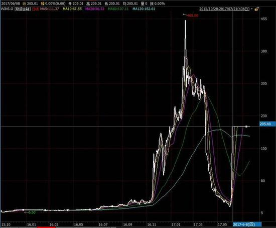 而2017开年后,其股价继续无遮拦地向上冲高,最高时达到465美元/股(相当于3185元/股),至2017年7月,即使回调到205美元/股,相对于2015年末6.5美元/股的最低点,其1年半时间的涨幅仍超过30倍(图1)。