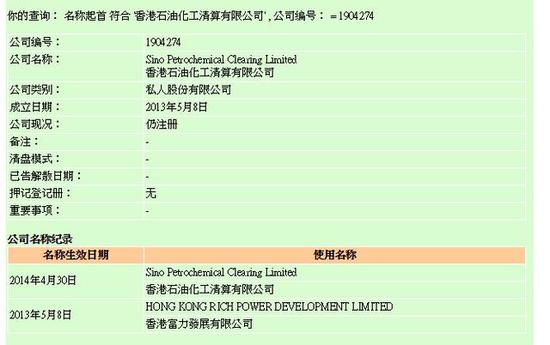 地方交易所平台正在被监管部门集中清理整顿,最新的监管方向是含有“交易所”字样的平台必须经过国家或省级政府批准才行,深油所目前并未取得这样的资质。从工商资料来看,深圳市前海石化产品交易清算服务有限公司的大股东为香港石油化工清算有限公司,而后者原名为香港富力发展有限公司,性质为私人股份有限公司(图5)。