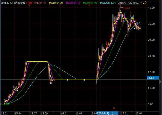 巧合的是,民盛金科(即原“宏磊股份”)近两年的股价最高点也出现在天津柚子最后一次质押附近。