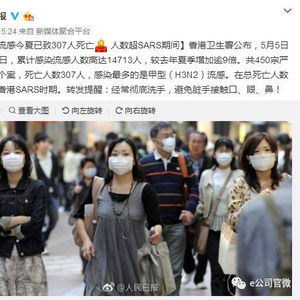 据人民日报,5月5日至8月2日,香港与流感相关的严重个案总数达458宗,共造成307人死亡,人数超过SARS时期。香港卫生署表示,最新监测数据显示,本地流感活跃程度在过去一星期有所下降,但仍维持在高水平,预期流感活跃程度在未来数周会继续维持在高水平。