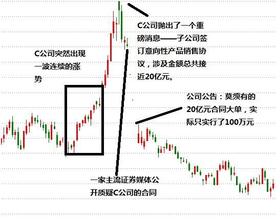 时间倒回2011年1月底,从事化工涂料行业的C公司一向平稳的股价突然出现一波连续的涨势。到2月中旬,股价升幅扩大,并触碰了交易所股价异常波动的标准。公司按照交易所《股票上市规则》的要求,发出了股价异常波动公告。公告中,公司声明,公司经营正常,也不存在应披露的事项或有关的筹划事项。但诡异的是,就在公司出公告的第二天,C公司就以筹划重大事项的理由申请了股票停牌。一星期后的3月2日,公司向投资者抛出了一个重磅消息——其子公司与四家客户签订了4份意向性产品销售协议,涉及金额总共接近20亿元。