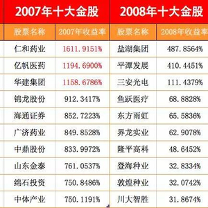 观察2008年的十大牛股,个股的年收益率远弱于2007年。其中盐湖集团最引人注目,当时这只个股被视作是茅台一样的“珍藏股”,2006年1月1日至2008年4月17日,从4.29元最高涨至103.94元,涨幅超过20倍,即使经历了08年金融危机,但也无碍该股成为2008年第一牛股。BUT,也就是4月之后,随着钾肥价格的下跌,该股价也一路向下,业绩神话覆灭,最终落得被吸收合并的下场。