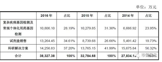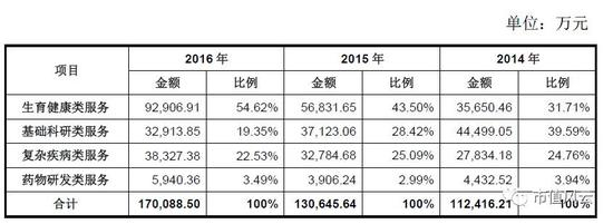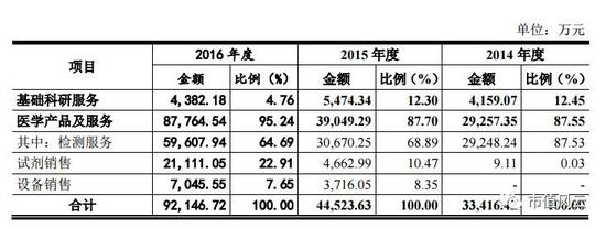 我们来看看贝瑞和康主营业务收入的分布,其主攻方向相当明确,就是做检测服务,且专攻无创产前基因检测。
