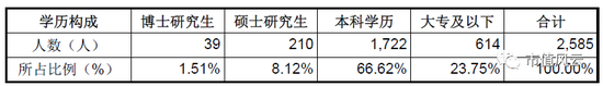 从研发人员的占比来看,末尾啊,感觉不是特别理想,管事的比干技术的还多啊,且这销售人员也不是小数目。那再看看学历,这博士加硕士不到10%。不都说硕士满大街都是嘛?真是欺负我们这些没读博士的。