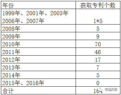 我们重点关注一下历年的获取情况。这里主要是对164项发明专利做了一个统计,以专利有效期的起始年份为标准制作了一个专利分布时间表。