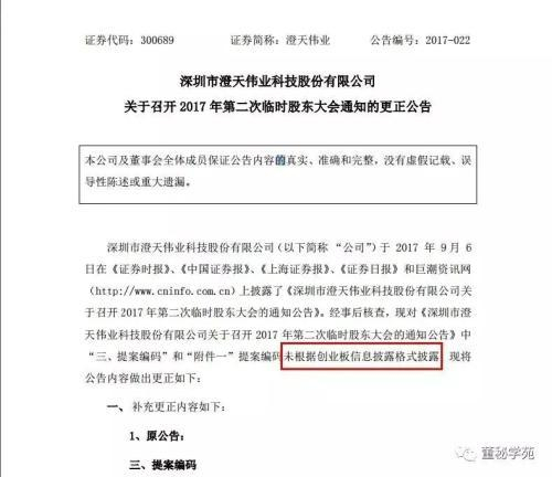 前有栋梁新材媳妇当董秘坑公公(栋梁新材媳妇董秘坑公公),现有澄天伟业女婿当董秘坑岳父。刚上市成交21个交易日的澄天伟业9月6日晚间连续发布三条更正公告,主要是因为公司此前公告存在着明显的审核错误以及没有按照创业板信息披露格式披露。