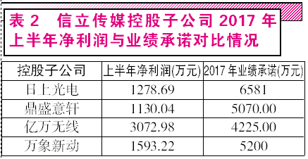 鼎盛意轩当初并购时给出的业绩承诺是2017年经审计的扣除非经常性损益后归属于母公司股东所有者的净利润不低于5070.00万元,而实际上其今年上半年实现的归属于母公司所有者的净利润也仅为1130.04万元,尚不足业绩承诺的四分之一,距离承诺目标也算是相当遥远了。而即使是今年2月起纳入合并报表的万象新动,其2月到6月实现的净利润也仅有1593.22万元,距离要实现的5200万元的承诺目标同样存在困难。