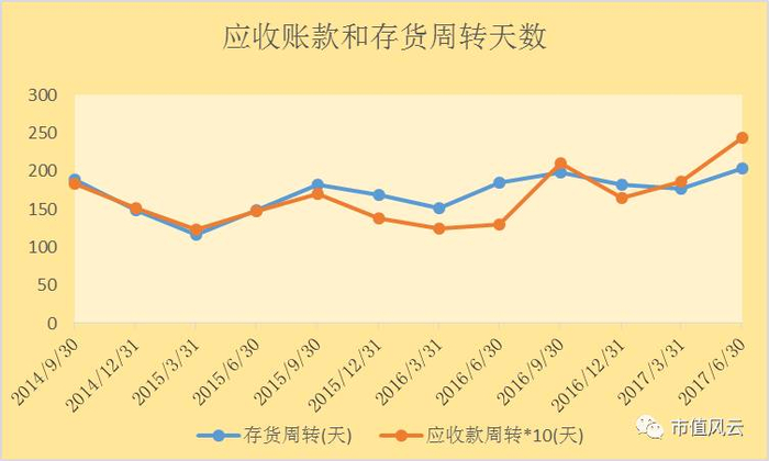 于是风云君就对比了最近几个季度美邦服饰应收账款周转天数和存货周转天数,如下图: