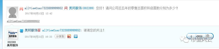 在这里我只能庆幸自己并不持有美邦服饰的股票了,而不会为董秘如此简单的回复弄得丈二和尚摸不着头脑。在这里心疼这位all开头的网友100秒,他的询问总换来莫名其妙的答复。
