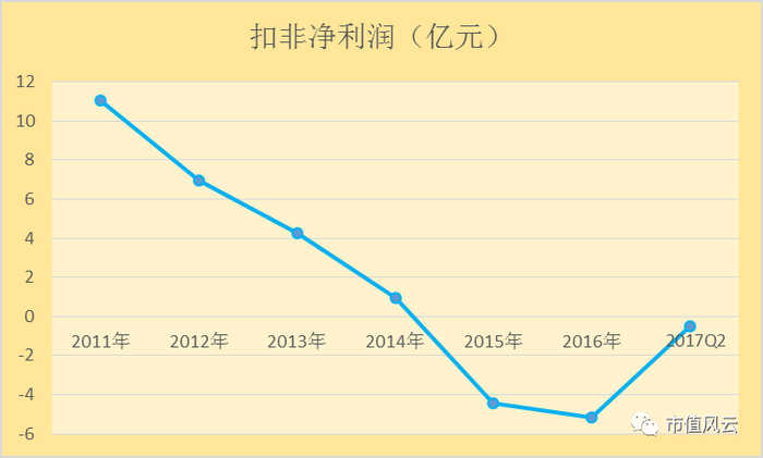 有读者肯定会说,风云君你搞错啦,美邦明明是从2015年业绩探底之后于2016年扭亏为盈。那我只能说你是图样图森破萨摩泰姆拿衣服了,实际上在2016年美邦实现了-5.18亿元的扣非净利润,收获了上市以来最大的亏损。