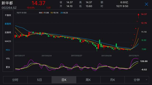 9月26日,新华都公告称,公司控股股东新华都集团将其持有的10%股份转让给阿里巴巴成都及其一致行动人杭州瀚云。同时,新华都与杭州阿里巴巴泽泰合计出资2亿元设立福建新盒,作为双方合作平台。复牌以来,新华都已经连拉6个涨停。