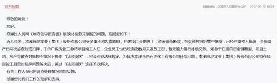 而后在2017年9月本溪市人民政府办公厅回复了该负责人的留言,留言道出了本溪绿地的窘境。