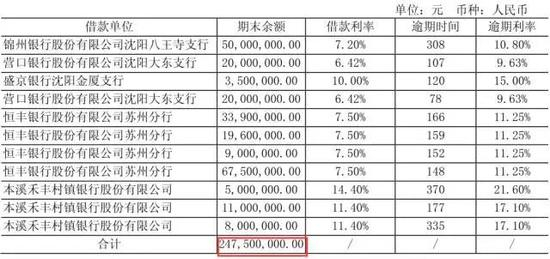 截至今年上半年,辽宁绿地已逾期未偿还借款4.575亿元,其中短期债务达2.475亿元,而逾期长期债务为2.1亿元。