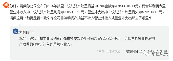上图中的扣非净利润在2015年就被腰斩了,为了维持表面光鲜,力帆股份卖掉了一部分投资性房地产,这部分的处置损益便高达2.89亿。