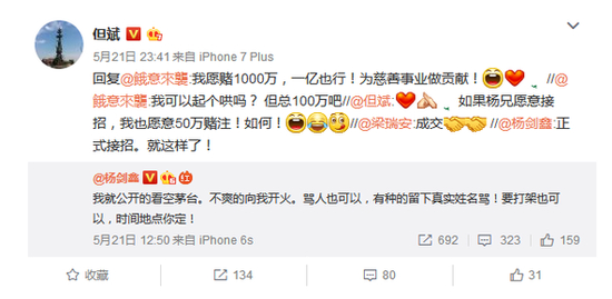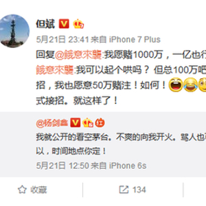 据悉,知名大V杨剑鑫曾公开表示,我就看空茅台,称不爽的像我开火,对于该微博,但斌发出了”一亿赌约“。