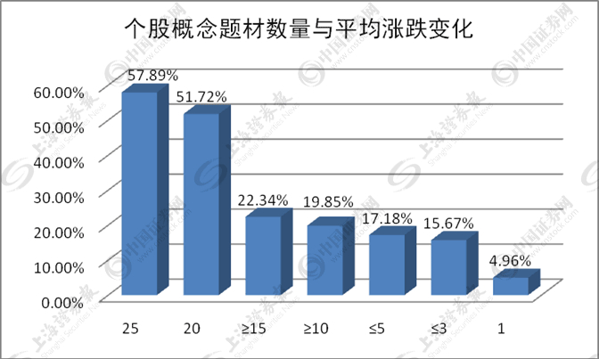 统计显示,有258只个股拥有10个或以上的概念题材,35只个股拥有15个或以上的概念题材,中兴通讯和欧菲光分别以25个和20个概念题材居前两位。