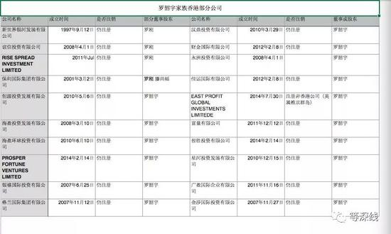 《等深线》通过对罗韶宇家族掌握的数十家香港公司和离岸群岛公司进行了交叉对比后发现,罗韶宇父母罗刚与彭启惠及罗韶宇、罗韶颖(罗韶宇之妹)均出现在香港一家公司的股东及董事会名单中。