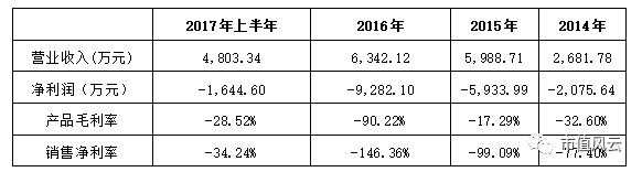 从上面数据可以看到德力光电的惨状,2014年至2017上半年,年年暴亏,无一例外。3年半累计亏了近2亿,连产品毛利率都一直是负数,在2016年甚至达到令人惊悚的-90.22%,销售净利率就更加没法看了。