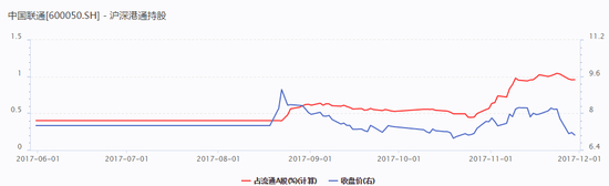 每日经济新闻(微信号:nbdnews)记者查询沪股通数据发现,自从今年8月21日复牌后,外资(中国内地以外资金)通过沪股通大量买进中国联通,而从10月26日以后,外资买入中国联通的速度开始加快。沪股通外资持股中国联通的比例已经从8月份的0.4%左右上涨至了目前的0.959%,增持了大约1.18亿股,增持资金也是接近了10亿元。