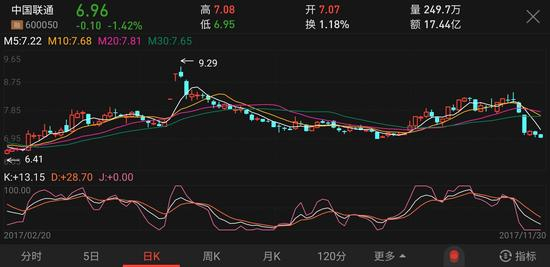 根据中国联通混改方案,战略投资者购入中国联通股份的价格为每股人民币6.83元。复牌之后,中国联通曾经历过两个涨停板,股价最高达到了9.29元。在经历了两个月的下行之后,中国联通股价再次上扬,并在11月23日达到了8.44元。