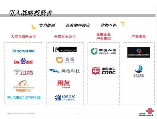 中国联通混改先行先试,对进一步深化国企具有杆杆意义,加之其引入的战略投资者既包括了百度、阿里、腾讯、京东、苏宁等互联网巨头,又有中国人寿、中国中车等大央企,因此备受关注。
