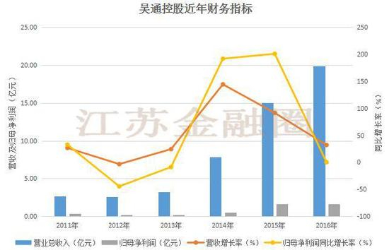 通过外延式并购,吴通控股得到的好处是显而易见的,而通过一些列被收购资产并表之后,吴通控股的总资产也由上市当年的4.47亿元增加到2016年的33.54亿元,而营收也由2012年的2.58亿元猛增至2016年的19.82亿元。