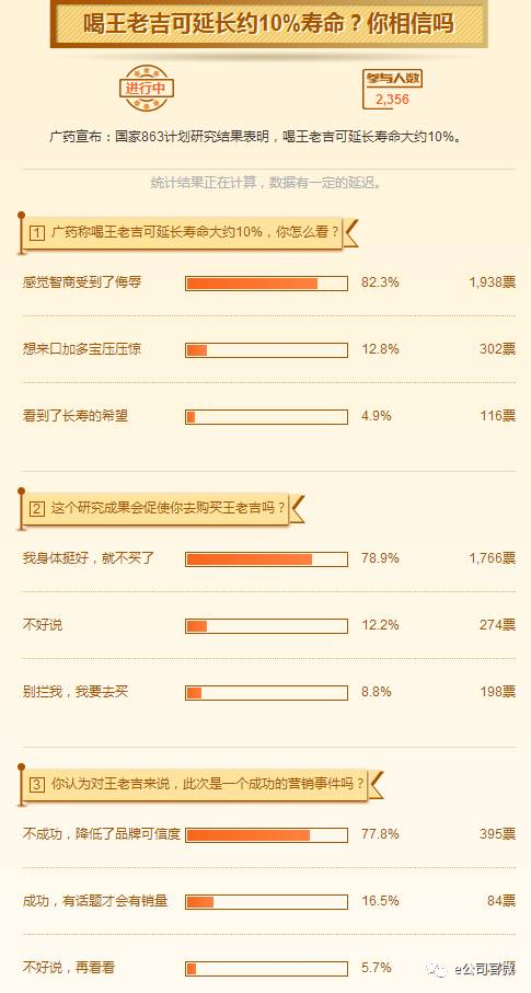 新浪财经一项关于是否相信喝王老吉可延长10%寿命的调查结果显示,超过80%的调查对象选择“不相信”。