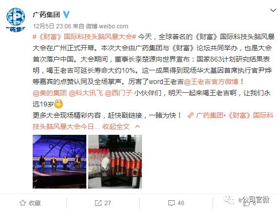 广药集团和王老吉的官方微博均发布了这条信息,广药集团微博还称,这一成果在现场还得到华大基因CEO尹烨等嘉宾的点赞认同。