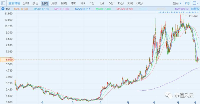 大规模融资,大手笔收购,由此胜利精密的经营范围也从单一的结构件制造,变为精密制造、智能制造和新能源三大主业,业绩坐火箭般蹿升,再加上2014年的10股转增10股,2016年的10股转增15股,股本由3.6亿扩张为34.21亿,股价与市值齐飞。