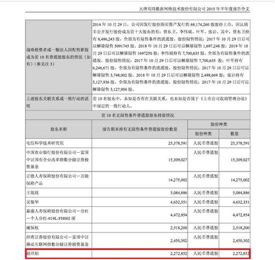 (2015年7月高鸿股份十大流通股东截图)