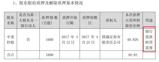 值得注意的是,今年4月,中麦控股解除了对1600万股的质押,用途是为了满足银行借款转贷的需要。