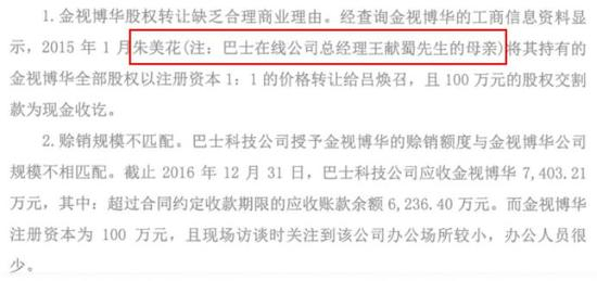 而上述巴士科技就是此前上市公司收购的全资子公司。在5月23日,中汇会计师事务所回复深交所关注函中,王献蜀母亲的股权转让行为也给她儿子惹了麻烦,会计师事务所认为1:1的价格转让缺乏合理的商业理由。另外,会计师事务所在访谈中还发现,金视博华的注册资本和办公场所与近7000多万的赊销规模并不匹配等问题。
