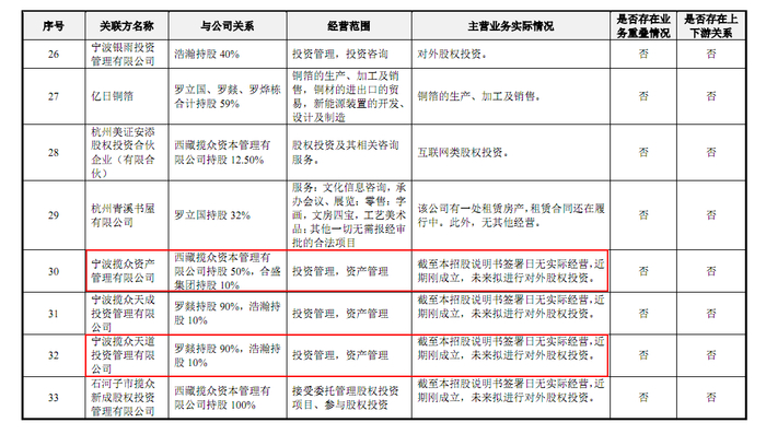 证券时报·e公司记者注意到,合盛硅业于今年10月17日发布的招股说明书中披露,罗燚和浩瀚为揽众天道的股东,分别直接持股90%和10%。浩瀚的履历载明,其自2017年5月起一直担任揽众天道董事。