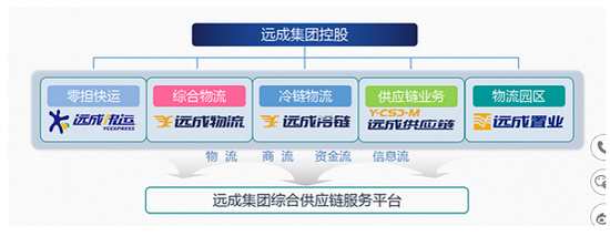 物流方面,远成物流整合公路、铁路、航空、水运及冷链等多方式的运输资源,有21500台可控车辆,覆盖全国15000条运输线路,200万平方米仓储面积。远成快运集团自有车辆8000余台、可控车辆2万余台,全国50家分公司、200个转运分拨中心、1300条干支线班车线路、9500个网点,覆盖100%省市、自治区,90%地级市,80%县级市。远成物流城以产业兴城的高度,先后在西南的重庆、成都、遂宁、广安,山东的淄博、潍坊 ,华东的上海,西北的兰州、西宁和东北的沈阳等地投资建成物流园区。远成冷链则自有各类冷藏车辆350余台,已成功与思念、安井、蒙牛、元祖食品等公司达成合作。
