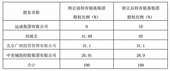 如此一来,一旦上述股权转让完成后,刘成文就持有银基集团30%,中青城投持有38.9%,而中青旅山东投资通过广纳投资间接持有31.1%的股份。