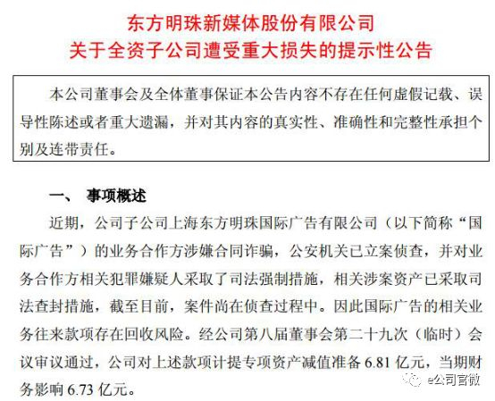 东方明珠2017年10月28日自揭了一项被广告代理商搞出来的合同诈骗案,让公司火了一把。