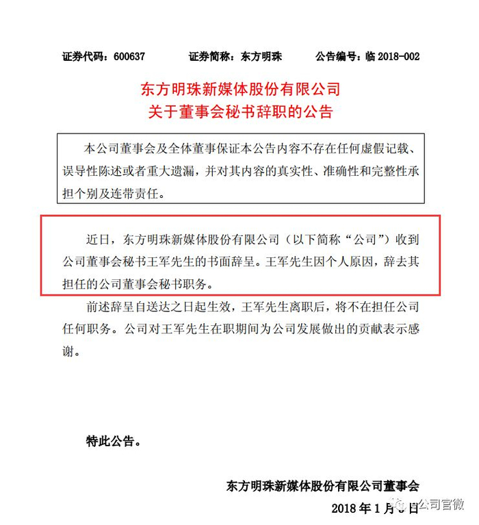 A股董秘跳槽第一人?!东方明珠董秘王军又辞职,13年来已经6连跳