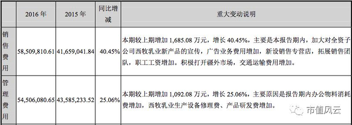 此外,根据2016年年报,上市公司在2016年在设备、研发、宣传等方面均对西牧乳业进行了大量投入,导致当年销售费用和管理费用大幅上升。