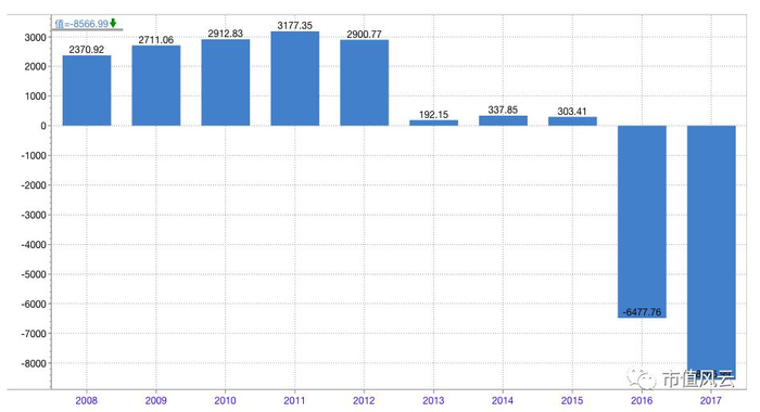 然鹅,如果从主营业务的业绩来看,形势更加严峻。从上图可以看出,2013年,上市公司扣非净利润出现了断崖式的下滑。