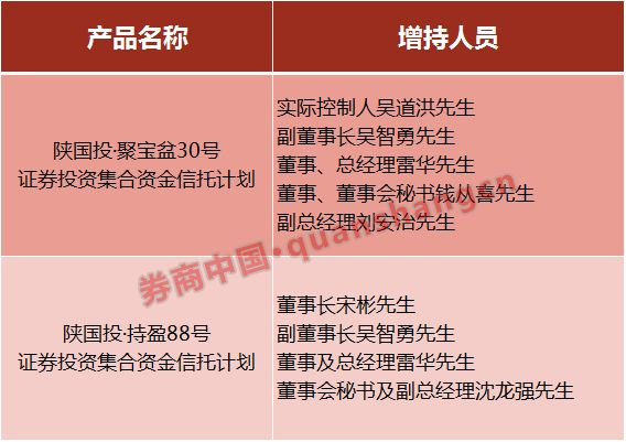 先来看这两只信托产品的由来,公告中提到陕国投·聚宝盆30号和陕国投·持盈88号都是董监高用来增持公司股份而成立,详情如下: