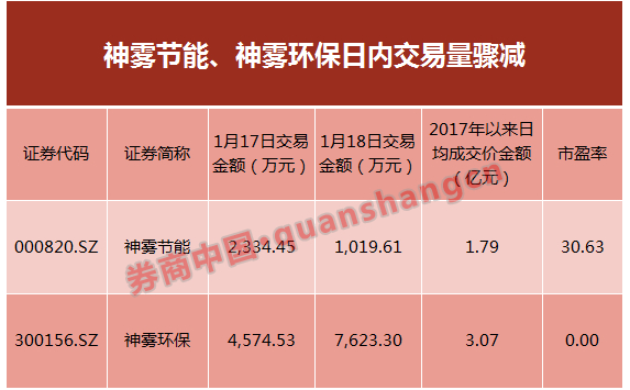 不过,受限于最近两日的一字跌停,神雾节能的流动性快速降低,1月17日和18日的交易金额只有2334.45万元和1019.61万元,比过往的日均交易金减少了86.95%和94.30%。